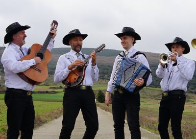 Interpretamos temas clásicos del repertorio azteca en castellano y euskera, euskal kantak y piezas instrumentales (polkas, pasacalles, jotas o zortzikos).